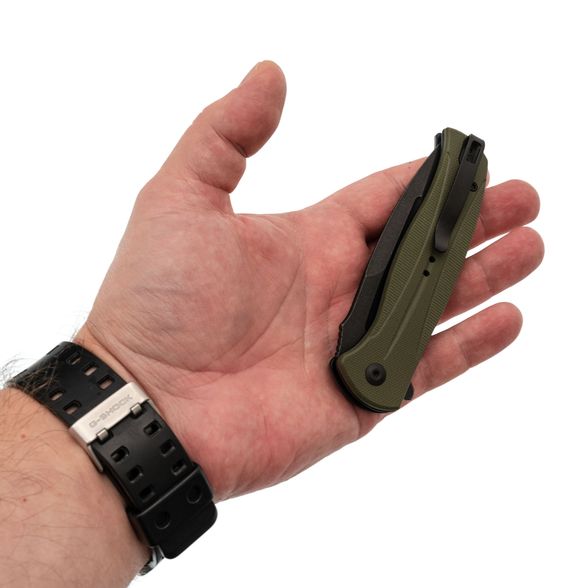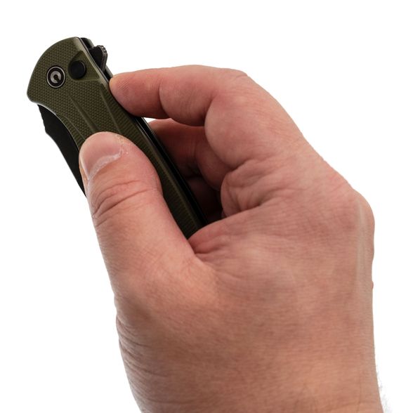 Накладки рукояти изготовлены из G10 - стеклотекстолита, который характеризуется высокой прочностью и стабильностью. Фирменная текстура делает рукоять более цепкой. Замок Button-Lock гарантирует прочность и удобство использования. Утопленная в накладку клипса предназначена для ношения ножа в кармане или других элементах одежды и экипировки не цепляясь за карман выступающей над рукоятью частью.