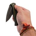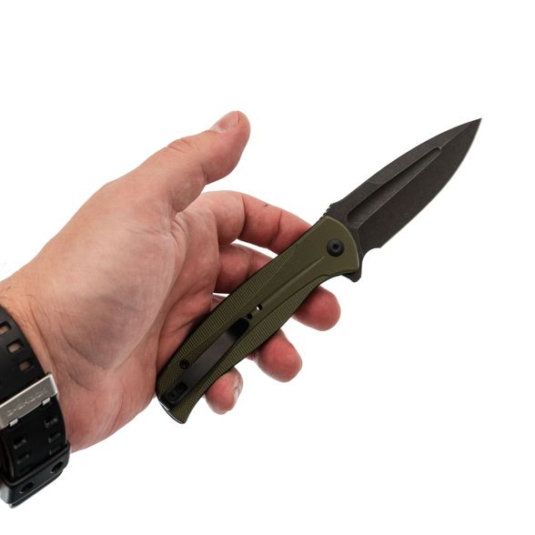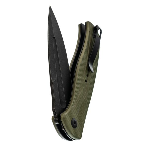 Клинок изготовлен из высококачественного шведского сплава Sandvik 14C28N, обеспечивающая сочетание коррозионной стойкости, легкости заточки и высокой ударной вязкости. Профиль Spear-Point ориентирован на высокую проникающую способность с деликатным кончиком, а высокие спуски и большой дол позволяют эффективно использовать его для резки. Черное покрытие клинка придает ему привлекательный внешний вид и повышает коррозионную стойкость стали.