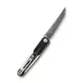 Клинок в форме Tanto, выполненный из нержавеющего дамаска с сердечником из стали 10Cr15CoMoV (аналог VG-10), обладает отличными характеристиками. Нож легко точится и долго сохраняет заточку, благодаря чему обеспечивается высокая режущая способность. Узкий клинок с прямыми спусками и минимальной толщиной 2.5 мм делает его идеальным инструментом для точных работ. Кроме того, нержавеющий дамаск позволяет ножу хорошо сопротивляться коррозии, что использовать нож в различных условиях эксплуатации.