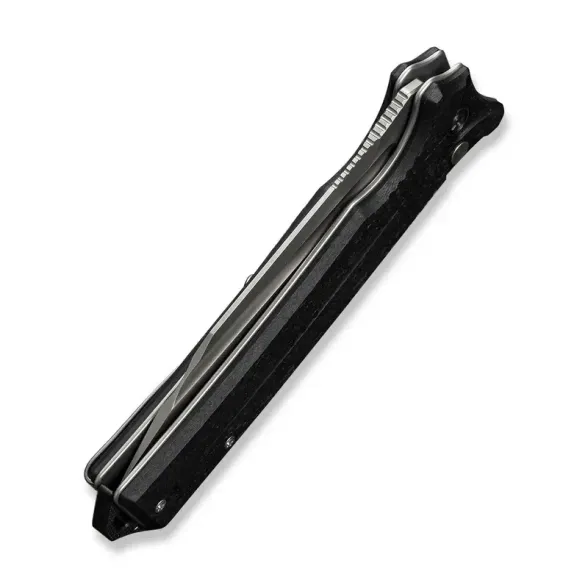 Клинок выполнен из стали Nitro-V, известной своей способностью легко точиться и поддерживать высокую твёрдость, а также способностью держать тонкие углы. Геометрия клинка с агрессивным прямым профилем Clip-Point и деликатным кончиком позволяет легко выполнять аккуратные надрезы и проникать в материалы с высокой точностью. Важно учитывать, что кончик лучше не использовать для серьёзных нагрузок. Прямые высокие спуски и дол на клинке придают ему отличные режущие характеристики. Покрытие Stonewash на клинке не только добавляет эстетическую привлекательность, но и эффективно скрывает царапины, возникающие при использовании ножа.