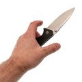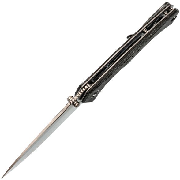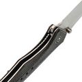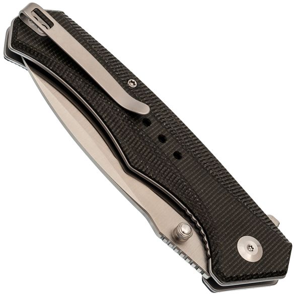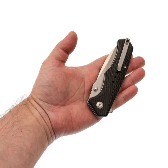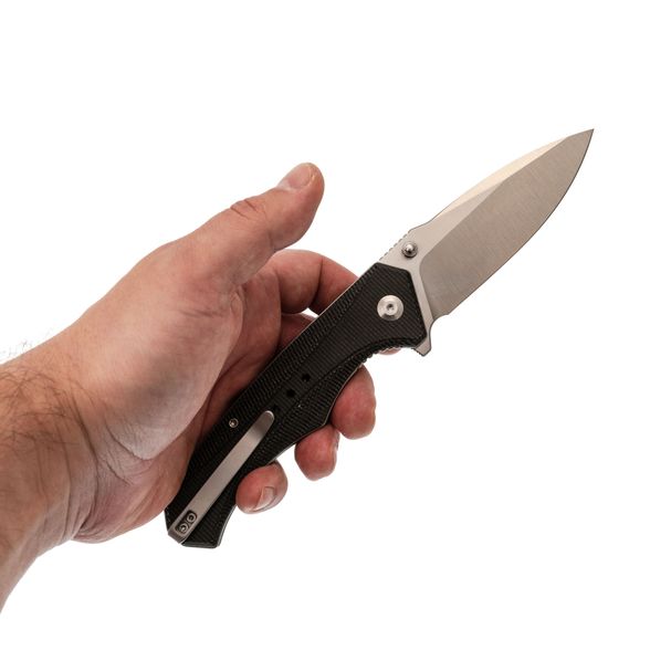 Клинок изготовлен из стали Sandvik 14C28N, известной своей устойчивостью к коррозии и простотой в заточке. Универсальная форма Drop-Point подходит для большинства задач — от резки мягких материалов до вскрытия упаковок. Прямые спуски на 3/4 клинка обеспечивают отличные режущие свойства. Нож оснащен шпеньками и плавником, позволяющими легко открывать его как правой, так и левой рукой.