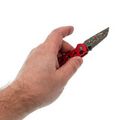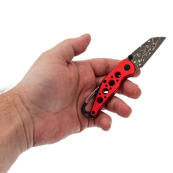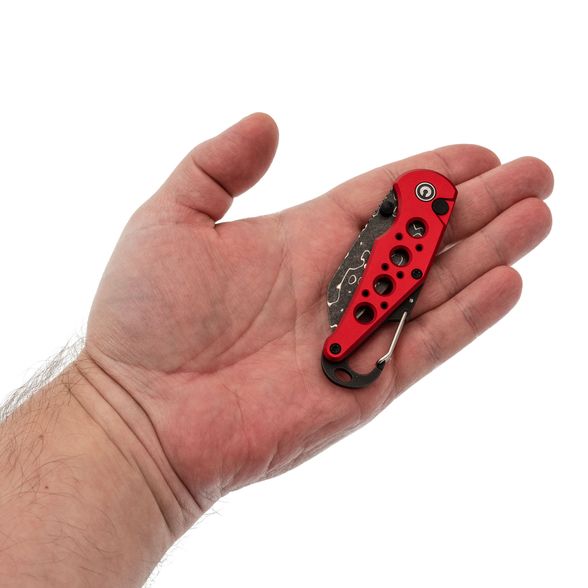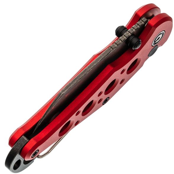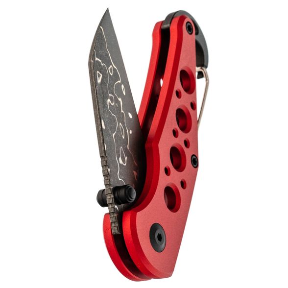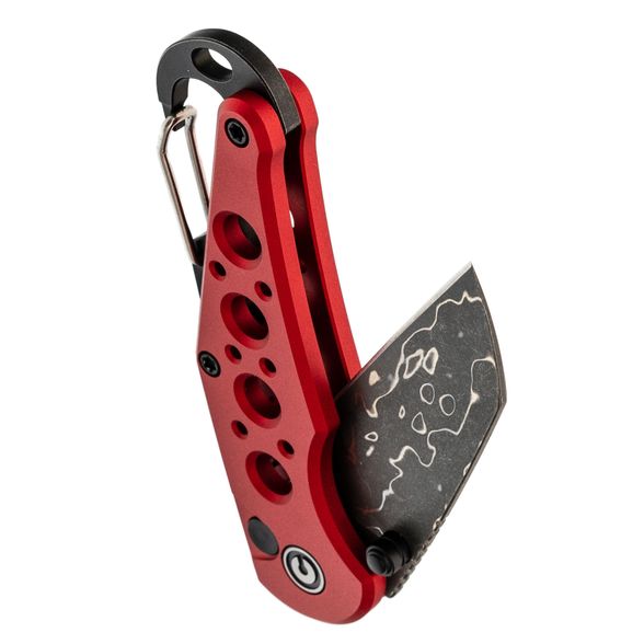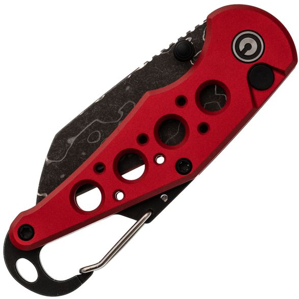 Рукоять ножа изготовлена из прочного алюминия, что гарантирует лёгкость, надежность и устойчивость к износу. В конструкции предусмотрены специальные отверстия, снижающие общий вес и способствующие улучшенной вентиляции. Кроме того, встроенный карабин может выполнять функцию бутылочной открывашки, а замок Button-Lock обеспечивает надёжную фиксацию лезвия в открытом положении, позволяя легко и инерционно открывать и закрывать нож.