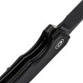 Рукоять состоит из стальных облегченных лайнеров и накладок из стеклотекстолита G10. Этот материал отличается высокой прочностью, водостойкостью и устойчивостью к перепадам температур. Текстура накладок обеспечивает надежное сцепление, позволяя уверенно держать нож в руке. Сочетание стальных лайнеров и G10 делает рукоять Regulatron прочной и надежной, подходящей для различных условий использования.