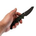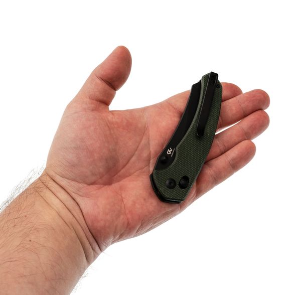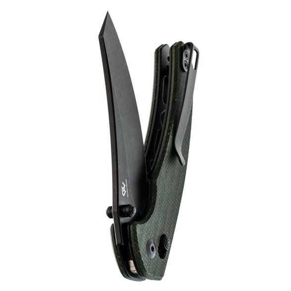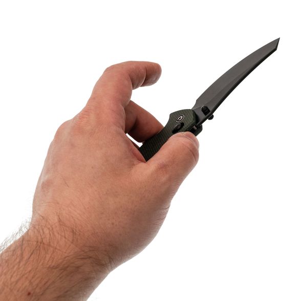 Клинок изготовлен из стали Nitro-V — она славится высокой твердостью, износостойкостью и устойчивостью к ржавчине. Reverse-Tanto профиль отлично режет за счёт своей дугообразной формы, а заострённый кончик идеален для точных операций. Дополнительное покрытие Black Stonewash придаёт клинку темный тактический оттенок, скрывает мелкие следы использования и увеличивает защиту от внешних воздействий. Высокие прямые спуски делают рез ещё более уверенным. Открытие возможно шпеньками с обеих сторон или инерционно — замок Crossbar-Lock (по типу Axis-Lock) обеспечивает надежное запирание и удобное однорукое управление.