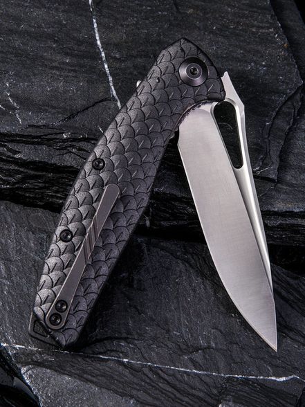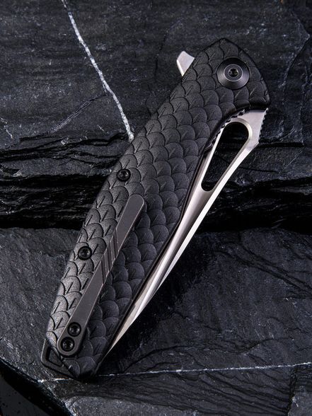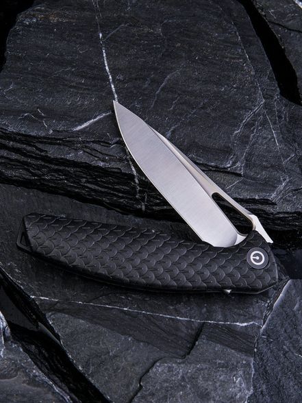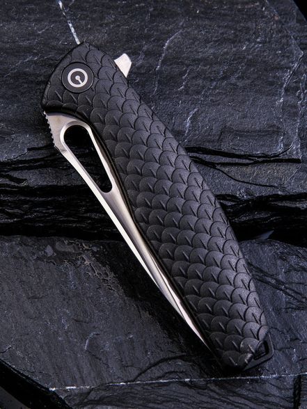 СКЛАДНОЙ НОЖ CIVIVI WYVERN, D2 это модель, которая сочетает в себе смелые дизайнерские решения и современные материалы. По своей внешности нож похож на рептилию, которая приготовилась к броску. Такой аналогии весьма соответствует рифление в форме чешуек на рукояти и фигурный пропил на клинке, которые напоминает глаз рептилии. Клинок ножа изготовлен из классической инструментальной стали американского производства, которая обладает высоким уровнем сопротивления к коррозии и легко поддается заточке с помощью карманной точилки.