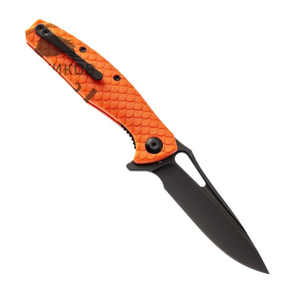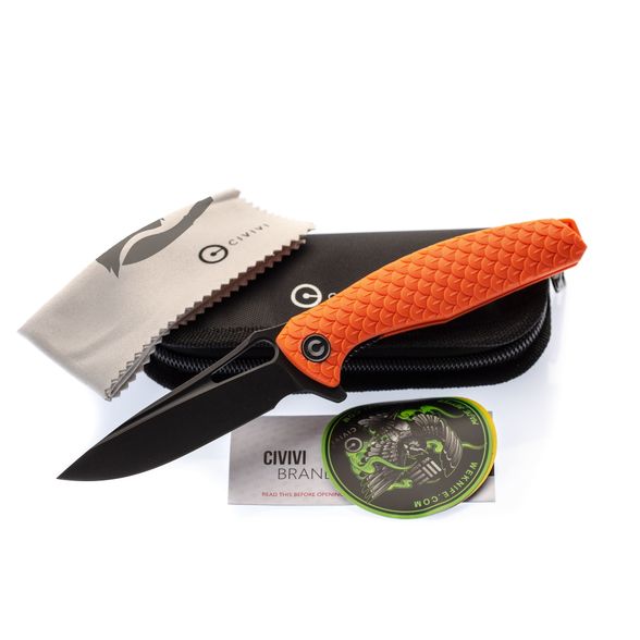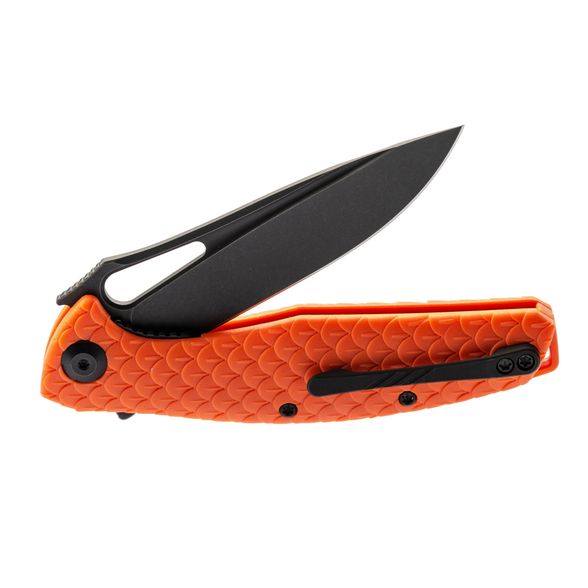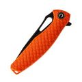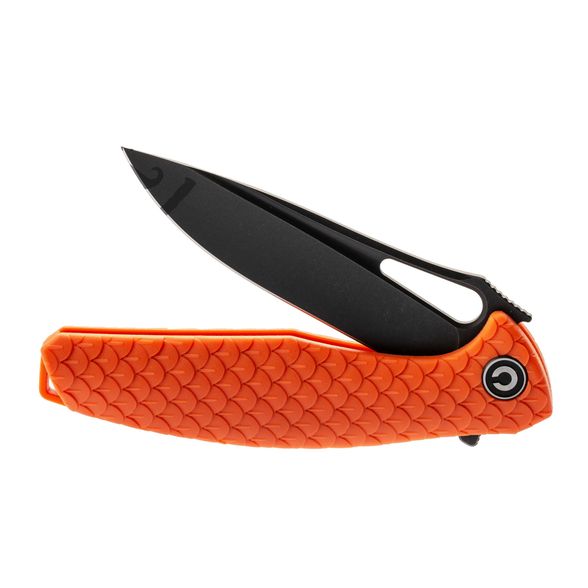 СКЛАДНОЙ НОЖ CIVIVI WYVERN ORANGE, D2 это модель, которая в равной степени может использоваться в городских и в полевых условиях. Например, очень удобно, что рукоятка выполнена из оражевого нейлона, это позволяет быстро найти нож в траве или на снегу. На поверхность клинка нанесено доплнительное покрытие черного цвета, которое повышает защиту от коррозии. Для приведения клинка в рабочее положение можно использовать выступ-флиппер или фигурный пропил на рукояти. В этой модели большое значение придается безопасности - в рабочем положении флиппер выступает в роли ограничителя, который защищает пальцы от соскальзывания на клинок.