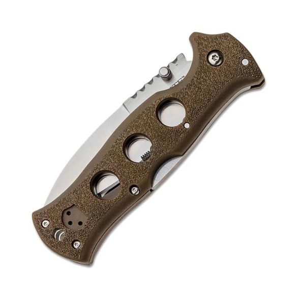 Складной нож Cold Steel Gunsite Counter Point I - это специальная версия ножа Counter Point, вдохновленного стилетами. Изготовленный в соответствии с высочайшими стандартами Cold Steel, Gunsite - это нож-зверь, способный разрывать ваши режущие задачи подобно пуле, летящей по воздуху к своей цели. Если вы ищете рабочий нож с изюминкой в виде стилета, остановите свой выбор на этом фолдере. Особенности: Сатинированный нож из стали AUS-10A с частичными засечками. Шпилька для открывания большим пальцем с шайбой. Коричневая рукоять Griv-Ex, обеспечивающая надежный хват и легкий вес. Надежный замок Tri-Ad от Cold Steel. Реверсивная карманная клипса для удобного и безопасного ношения.
