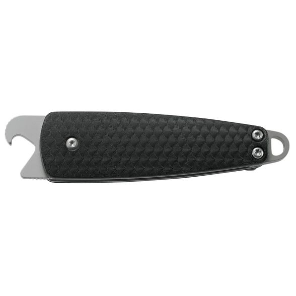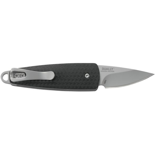 Складной нож CRKT Dually сочетает в себе компактность, прекрасную сбалансированность и креативный дизайн. Модель создавалась в сотрудничестве с известным найфмейкером Ричардом Роджерсом из Нью-Мексико. Клинок изготовлен из коррозионностойкого сплава 5Cr15MoV, отличающегося высокой прочностью и быстротой заточки. Помимо основного режущего инструмента, миниатюрный складной нож оснащен открывалкой для бутылок. Последняя может использоваться только при полном закрытии лезвия. Рукоять выполнена в виде накладок из армированного стекловолокном термопластика GRN с текстурированной поверхностью. CRKT Dually оснащен карманной клипсой и отверстием для темляка. Также данное отверстие можно использовать, чтобы носить нож на кольце со связкой ключей.