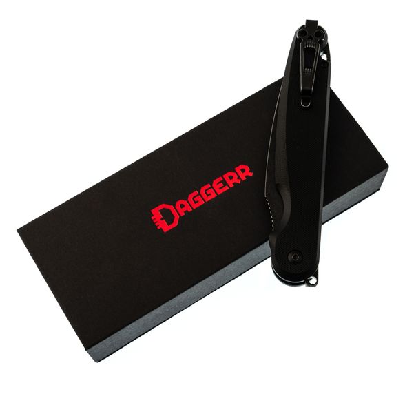 Складной нож Dagger Parrot 3.0 All Black, G10 - это их первый нож с кнопочным замком. Цель этого нового замкового механизма - убрать пальцы с пути клинка при складывании ножа. В конструкции этого замка также предусмотрен штифт, который превращает складной нож фиксированный. Просто открутите винт у темлячного отверстия и поместите его в отверстие у подпальцевой выемки, пока ваш нож открыт. Теперь у вас есть полноразмерный фиксированный нож, который можно сложить проделав эти действия в обратном порядке! Карманная клипса для глубокого ношения заставит этот большой нож исчезнуть в кармане. Оснащенный стеклобоем и привлекающей внимание карманной клипсой с орущим черепком, этот нож обязательно произведет впечатление.
