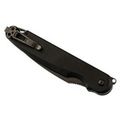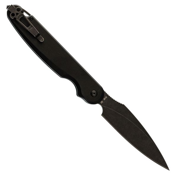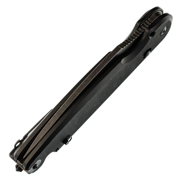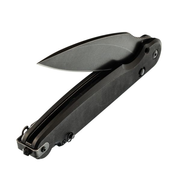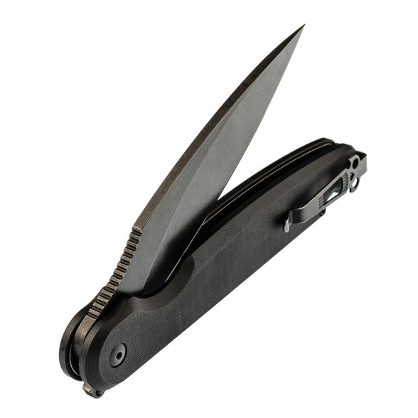 Клинок выполнен из инструментальной стали D2 с черным покрытием - эта сталь долго держи заточку и даёт резу агрессивность, а покрытие нивелирует склонность к коррозии. Флиппер для удобного использования одной рукой. Рукоять из G10 - прочный и неприхотливый материал, по праву завоевавший сердца многих ножеманов.