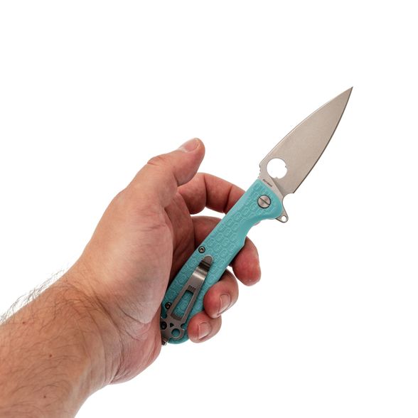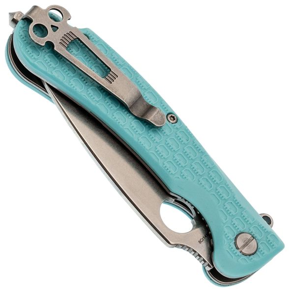 Рукоять из FRN в стильном цвете тиффани выделяет модель визуально и делает ее удобной в использовании. Рельефная текстура предотвращает скольжение, а глубокая карманная клипса обеспечивает надежное и незаметное крепление при ношении. Дополнительно предусмотрен стеклобой, расширяющий функциональность конструкции. Resident от Daggerr - это продуманный EDC-инструмент, объединяющий стиль, удобство и практичность.