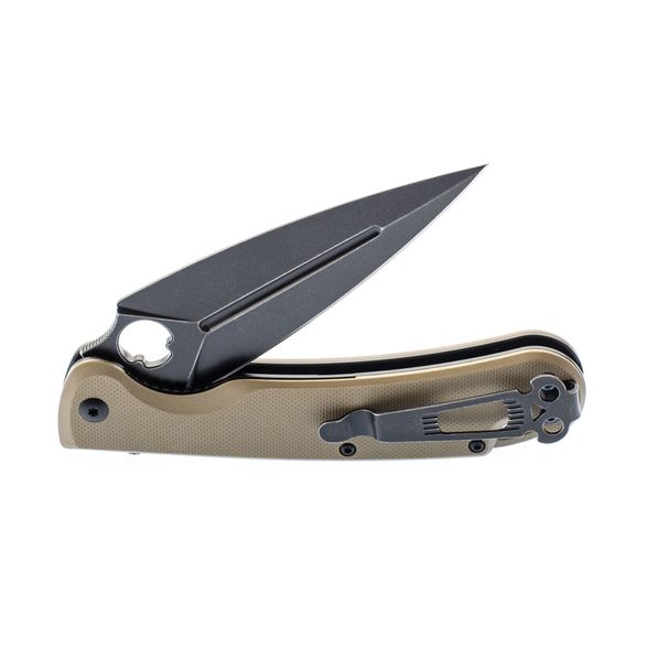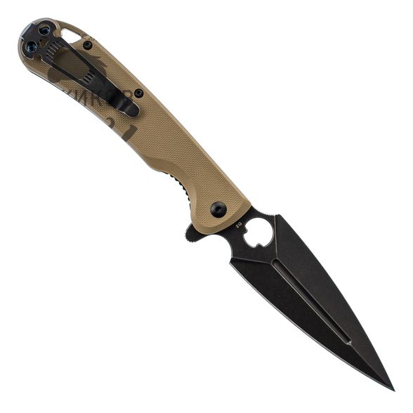 Складной нож Daggerr Arrow Tan, сталь D2 сочетает в себе дань традициям, современный дизайн и качественные материалы из примеального сегмента. Нож, конечно же, сразу обращает на себя внимание формой своего клинка, в которой таится много мелких и интересных деталей. Клинок по своей форме похож на кинжал и наконечник копья одновременно. Ромбическое сечение и фрезерованный дол на стыке граней делают его похожим на лучшие образцы средневекового оружия. Несмотря на компактные размеры нож вполне подходит для тактического применения. Среди важных моментов также стоит отметить наличие глубокой подпальцевой выемки и отверстие для темляка. Благодаря рифлению на пружине лайнер-лока нож легко открывается и закрывается одной рукой.