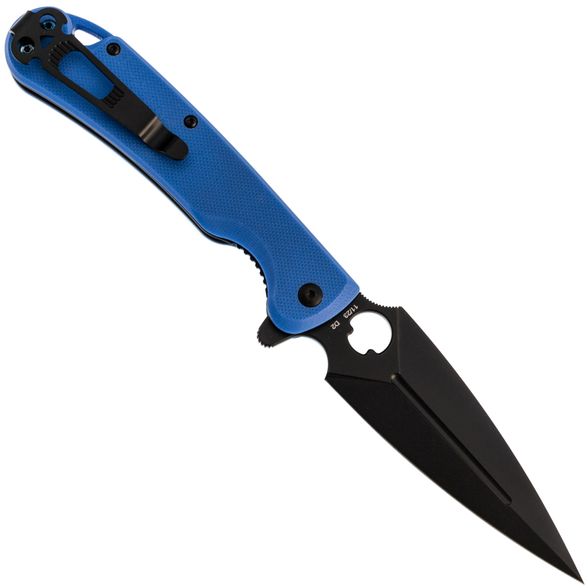 Складной нож Daggerr Arrow выделяется благодаря кинжальной форме клинка, которая придает ему выдающуюся проникающую способность, в то время как деликатное острие обеспечивает аккуратные надрезы. Тактически профилированный клинок длиной 99 мм, выполнен из прочной инструментальной стали D2, известной своей удивительной способностью долго держать заточку и агрессивностью при резе. Алмазоподобное покрытие DLC на клинке не только придает ножу воинственный вид, но и служит надежной защитой от коррозии, позволяя сохранить исключительное качество лезвия даже при самых суровых условиях эксплуатации.