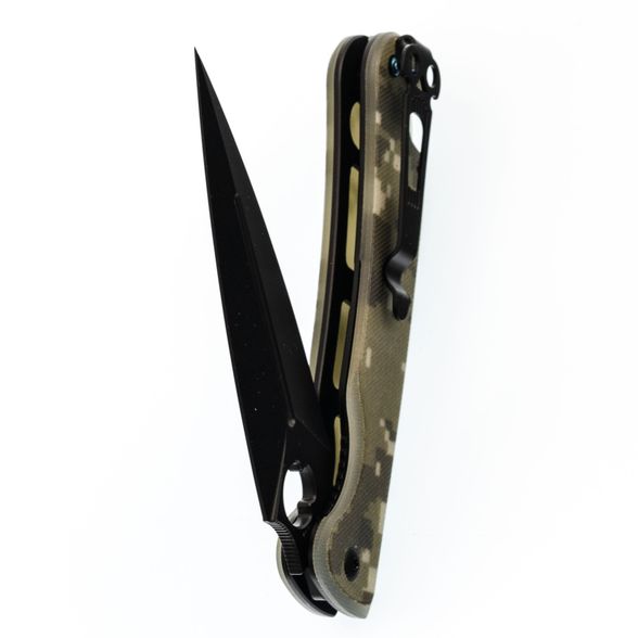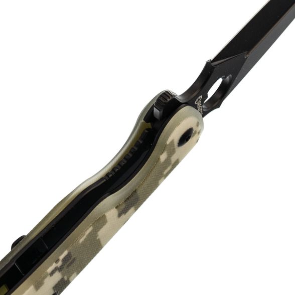 Рукоять Arrow, усиленная накладками из стеклотекстолита G10, обеспечивает великолепное сцепление и комфорт, насечки на рукояти предотвращают скольжение, гарантируя безопасность и контроль при каждом использовании. А благодаря наличию темлячного отверстия и переставляемой клипсы, этот нож может быть готовым к быстрому доступу и использованию в любой момент, удовлетворяя потребности как правши, так и левши.