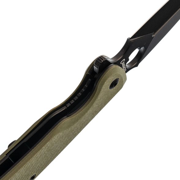 Складной нож Daggerr Arrow выделяется благодаря кинжальной форме клинка, которая придает ему выдающуюся проникающую способность, в то время как деликатное острие обеспечивает аккуратные надрезы. Тактически профилированный клинок длиной 99 мм, выполнен из прочной инструментальной стали D2, известной своей удивительной способностью долго держать заточку и агрессивностью при резе. Алмазоподобное покрытие DLC на клинке не только придает ножу воинственный вид, но и служит надежной защитой от коррозии, позволяя сохранить исключительное качество лезвия даже при самых суровых условиях эксплуатации.