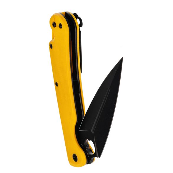 Складной нож Daggerr Arrow выделяется благодаря кинжальной форме клинка, которая придает ему выдающуюся проникающую способность, в то время как деликатное острие обеспечивает аккуратные надрезы. Тактически профилированный клинок длиной 99 мм, выполнен из прочной инструментальной стали D2, известной своей удивительной способностью долго держать заточку и агрессивностью при резе. Алмазоподобное покрытие DLC на клинке не только придает ножу воинственный вид, но и служит надежной защитой от коррозии, позволяя сохранить исключительное качество лезвия даже при самых суровых условиях эксплуатации.