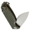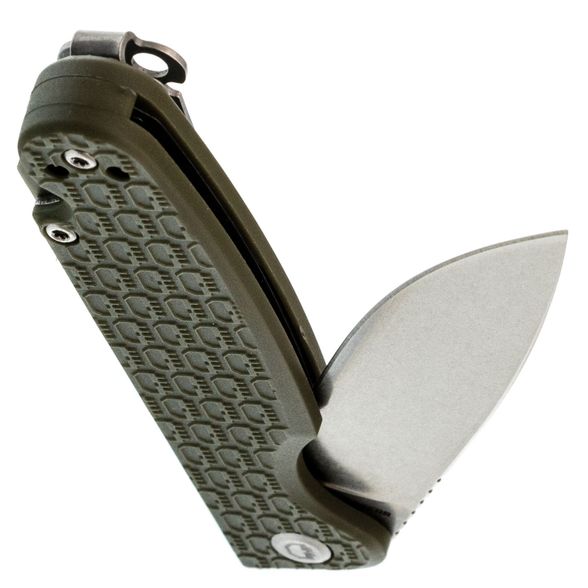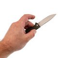Клинок Dopey выполнен в профиле Drop-Point, который идеально подходит для универсальных задач. Прямые спуски от тонкого обуха делают его отличным резаком для самых различных материалов. Такая геометрия обеспечивает не только отличную проникающую способность, но и прочность на излом.