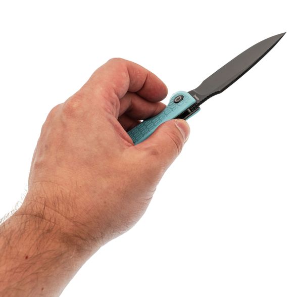 Рукоять из термопластика FRN в цвете тиффани сочетает стильный внешний вид и функциональность. Цепкая текстура препятствует скольжению, а эргономичная форма обеспечивает надежный хват при длительной работе. Удобный флиппер облегчает открытие, а встроенный стеклобой расширяет возможности использования. Fielder от Daggerr - это удачное сочетание доступной цены, фирменного дизайна и практичности для ежедневного применения.