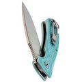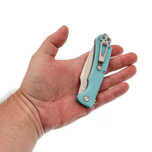 Рукоять из FRN в цвете тиффани выделяет модель на фоне аналогов, сохраняя при этом удобство и функциональность. Цепкая текстура предотвращает скольжение, а продуманная форма корпуса обеспечивает комфорт даже при длительном использовании. Удобный флиппер облегчает открытие, а встроенный стеклобой расширяет функциональные возможности изделия. Fielder от Daggerr сочетает в себе доступность, надежность и стильный дизайн, делая его отличным выбором для повседневного применения.
