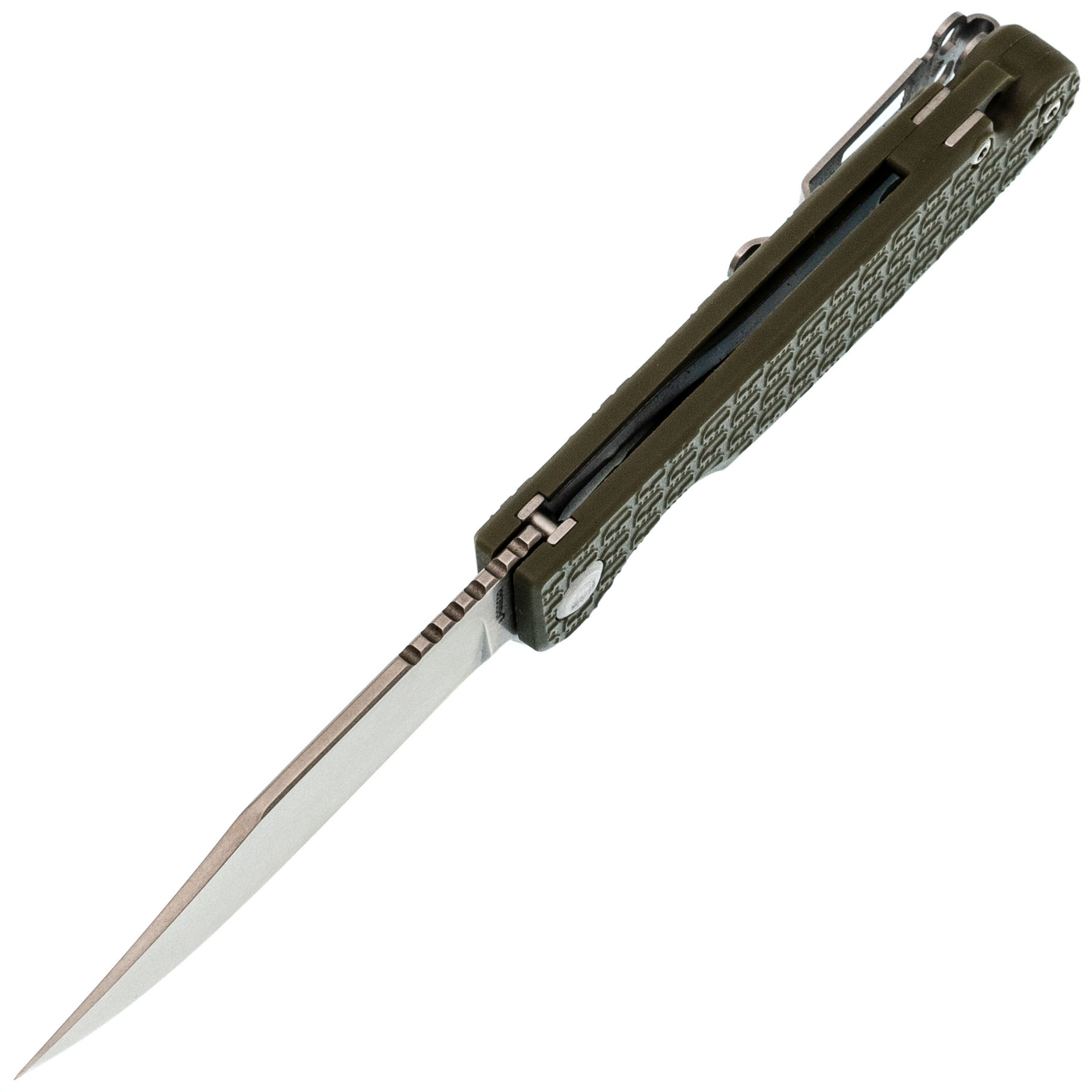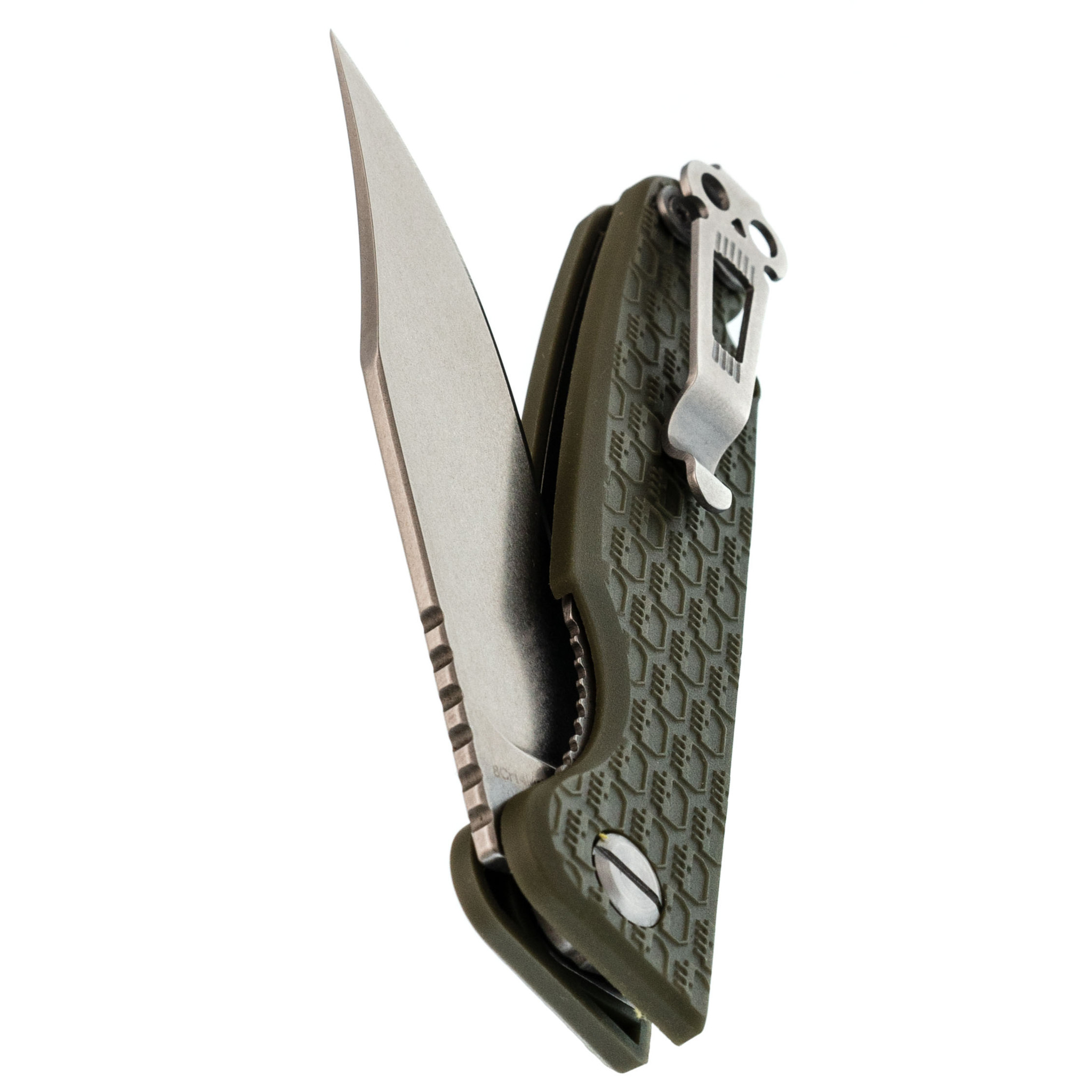Рукоять Leprechaun продумана так, чтобы обеспечивать максимальный комфорт. Стальные лайнеры добавляют прочности, а текстурированные накладки из FRN улучшают сцепление и не скользят в руке. Лёгкость открывания за счет флиппера и подшипников в осевом узле позволяет одним движением открыть клинок. К тому же, нож оснащен клипсой с уникальным черепом и темлячным отверстием, что делает его не только функциональным, но и стильным аксессуаром.