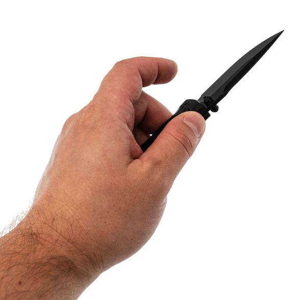 Форма Drop-Point и высокие прямые спуски обеспечивают удобство при работе с самыми разными материалами и задачами. Черное PVD-покрытие не только украшает клинок, но и делает его менее заметным для царапин. Открытие возможно при помощи двухсторонних шпеньков или инерционно через замок X-Lock - аналог Axis-Lock, который славится надёжностью и простотой эксплуатации.
