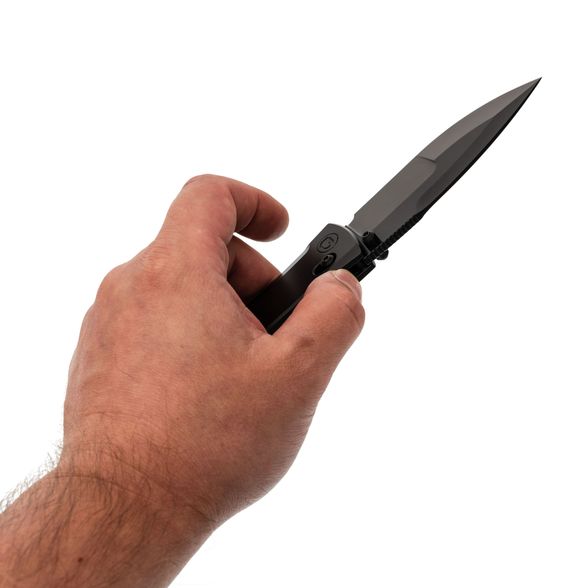 Главная особенность - необычное сочетание типов спусков. Прямые спуски у кончика клинка придают дополнительную прочность, в то время как вогнутые у пятки идеально подходят для деликатных и точных задач. Черное PVD-покрытие не только украшает, но и обеспечивает дополнительную защиту поверхности. Открывание - классическое для Daggerr: можно использовать двухсторонние шпеньки или воспользоваться плавным инерционным механизмом X-Lock.