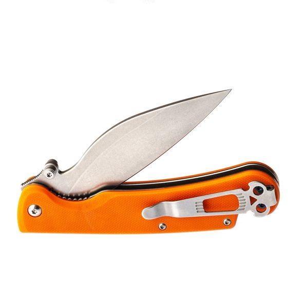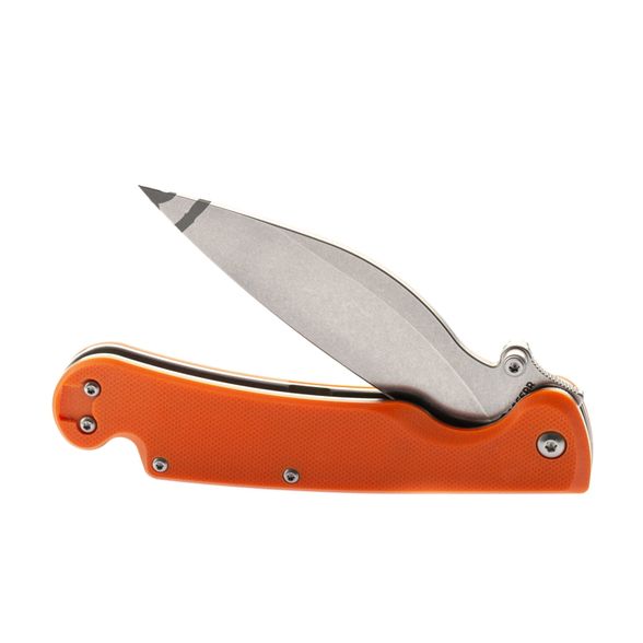 СКЛАДНОЙ НОЖ DAGGERR PELICAN ORANGE, СТАЛЬ D2, G10 это отличный вариант для пикников и несложных походов. Одно из преимуществ этой модели - ярко-оранжевая рукоять, которая позволяет быстро находить нож среди других предметов. Это также очень удобно если вы уронили нож в глубокий снег, высокую траву или в воду. Накладки рукояти выполнены из рифленого тактического стеклотекстолита, что обеспечивает уверенное сцепление с рукой в процессе работы. Клинок ножа имеет оригинальную форму, которая делает его похожим на клюв пеликана или крыло хищной птицы. Высокие спуски обеспечивают плавный подвод к режущей кромке, что обеспечивает бритвенную остроту. На кармане нож фиксируется с помощью фигурной и надежной клипсы.