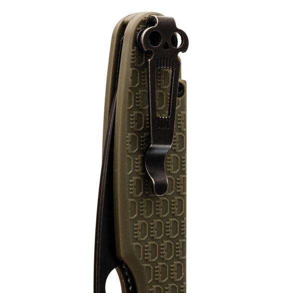 Рукоять Piranha - это пример простоты и практичности. Основу рукояти составляют стальные лайнеры, обеспечивающие прочность, а накладки из FRN с текстурой обеспечивают уверенный захват. Для безопасного использования нож оснащен замком Liner-Lock, а для удобства ношения предусмотрены темлячное отверстие и клипса с черепом. Таким образом, Piranha - это идеальный нож для тех, кто ценит комфорт и практичность в своем инструментарии.