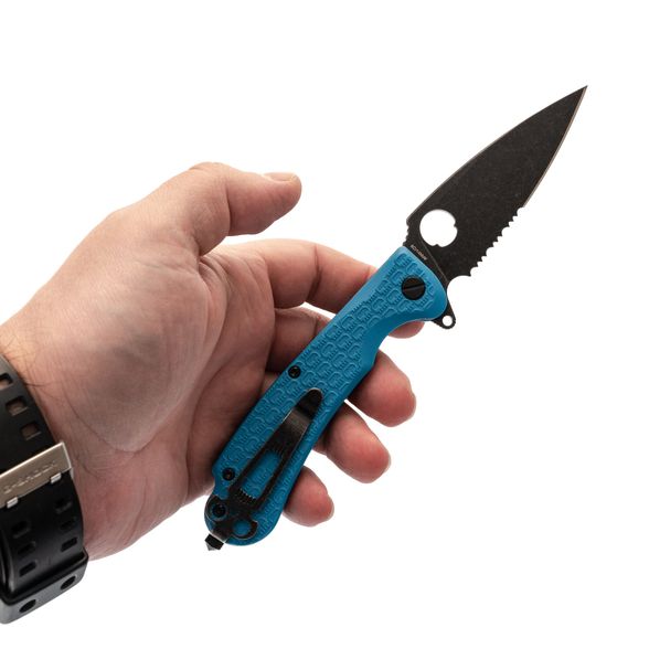 Опытные пользователи и энтузиасты ножей оценят надежность и функциональность складного ножа Daggerr Resident Blue BW Serrated. Этот нож с завидной общей длиной 203 мм и вполне разумной длиной клинка 88 мм обеспечивает достаточное рабочее пространство для выполнения широкого спектра задач реза. Толщина обуха в 3 мм и твердость стали 57-58 HRC указывают на прочный клинок, способный выдержать значительные нагрузки, сохраняя при этом остроту реза.