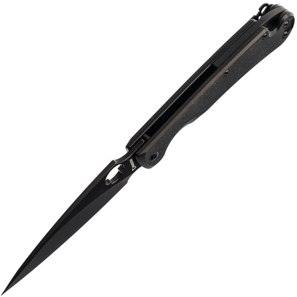 Созданный для тонких и точных работ, данный нож имеет прямые спуски, плавно сужающиеся к острию, завершаются в утонченном кончике, идеальном для проникающих действий или деликатных надрезов. В то же время пятка клинка с низким спуском способна выдержать более серьезные нагрузки.