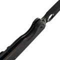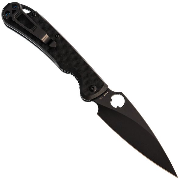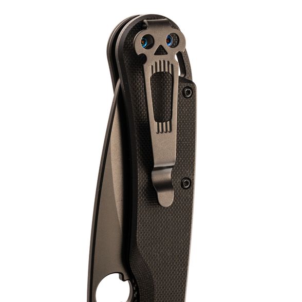 Сталь D2, использованная в клинке, гарантирует агрессивность реза и долговечность заточки, однако важно помнить о её предрасположенности к коррозии, что требует небольшого ухода за ножом. Клинок имеет алмазо-подобное покрытие DLC, что предохраняет его от коррозии и делает его стильно-черным.