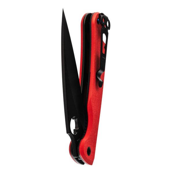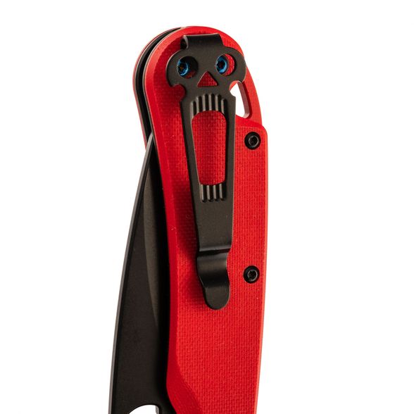 Сталь D2, использованная в клинке, гарантирует агрессивность реза и долговечность заточки, однако важно помнить о её предрасположенности к коррозии, что требует небольшого ухода за ножом. Клинок имеет алмазо-подобное покрытие DLC, что предохраняет его от коррозии и делает его стильно-черным.