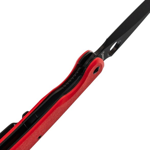 Рукоятка ножа с накладками из стеклотекстолита G10 не только дарит удивительную эргономику но и обладает надежной цепкой текстурой, обеспечивая уверенное и безопасное удержание.