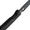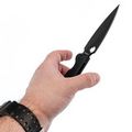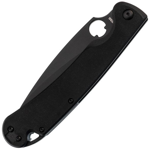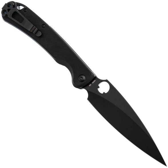 Сталь D2, использованная в клинке, гарантирует агрессивность реза и долговечность заточки, однако важно помнить о её предрасположенности к коррозии, что требует небольшого ухода за ножом. Клинок имеет алмазо-подобное покрытие DLC, что предохраняет его от коррозии и делает его стильно-черным.