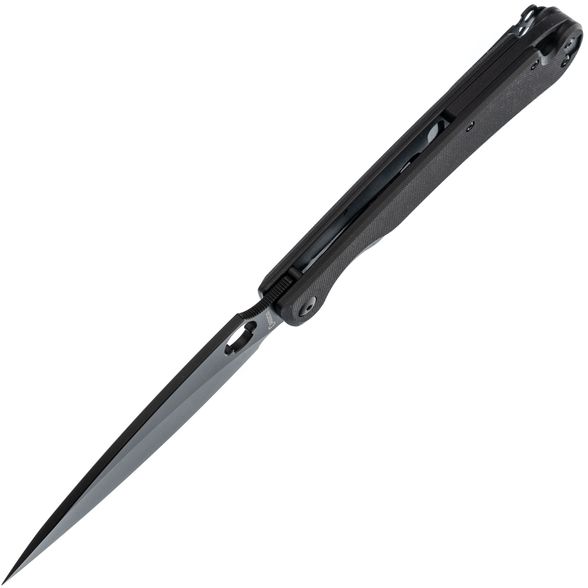 Созданный для тонких и точных работ, данный нож имеет прямые спуски, плавно сужающиеся к острию, завершаются в утонченном кончике, идеальном для проникающих действий или деликатных надрезов. В то же время пятка клинка с низким спуском способна выдержать более серьезные нагрузки.