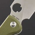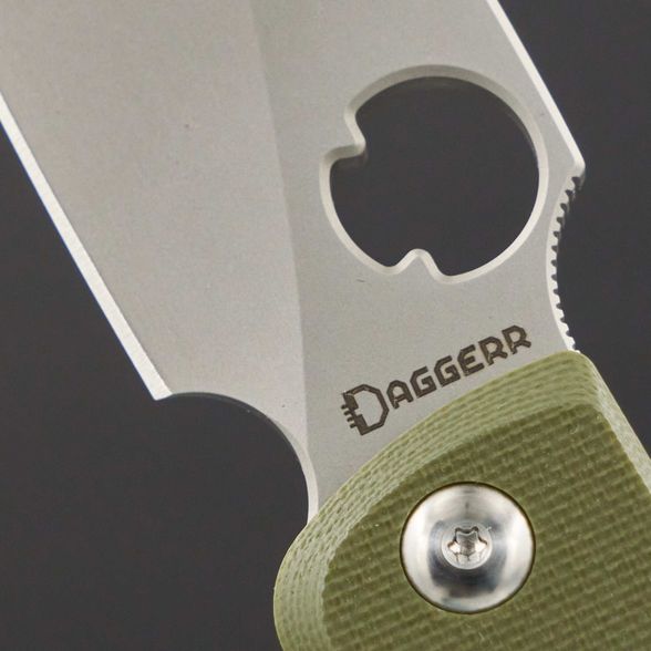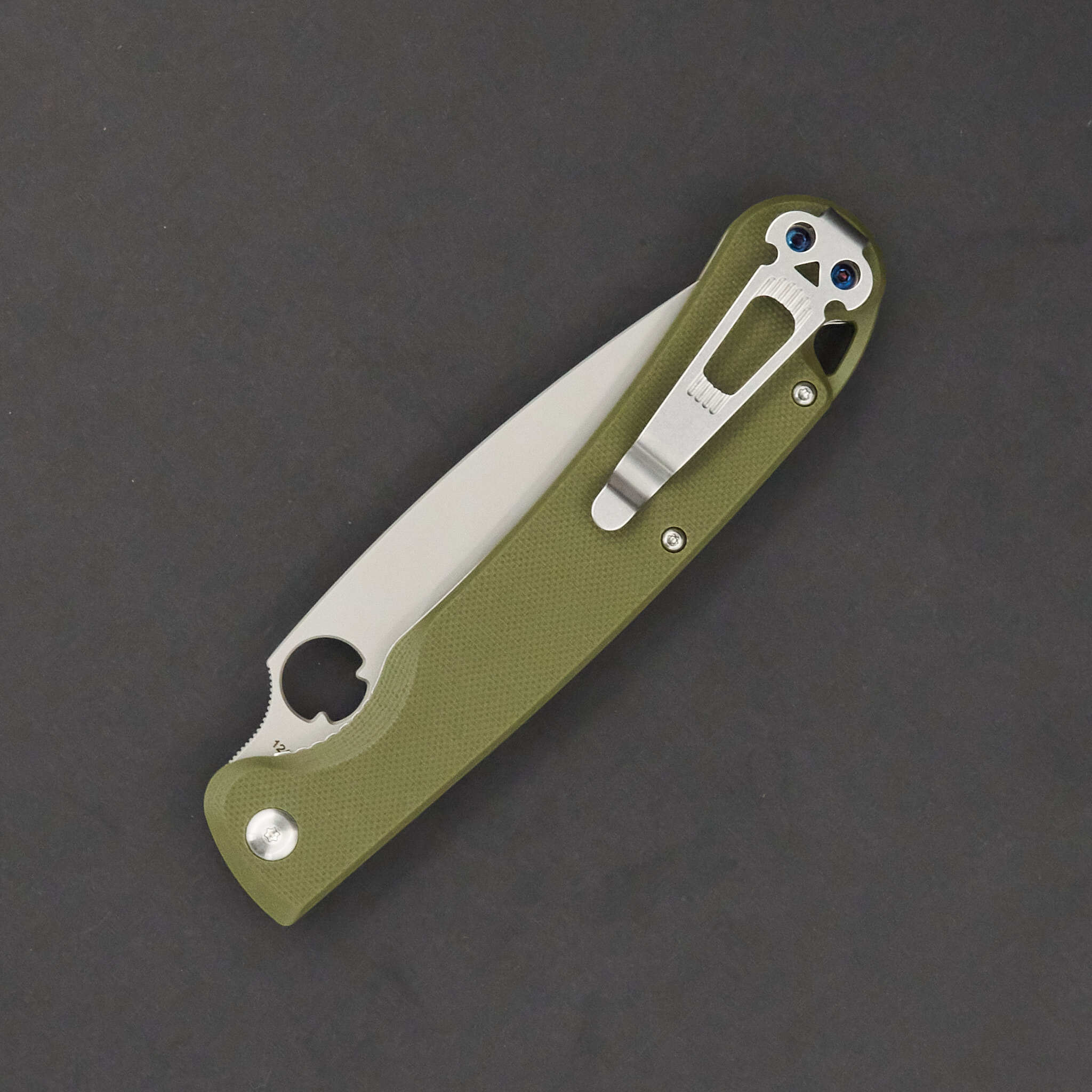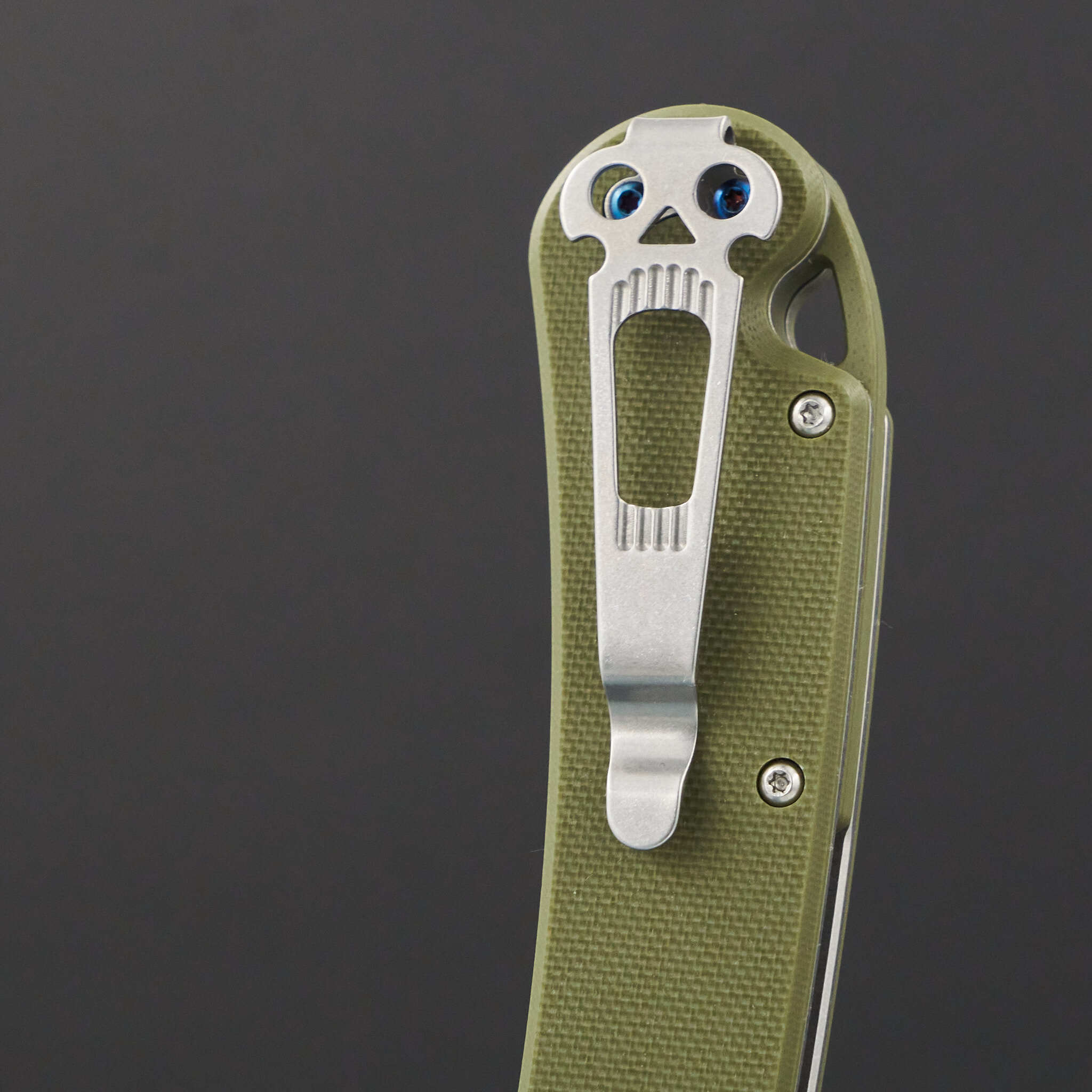 Оливковая рукоять из G10 выглядит сдержанно, но работает на все сто. Текстурированная поверхность надёжно удерживается в ладони, а плавные формы повторяют анатомию руки. Удобная клипса и темлячное отверстие завершают практичный дизайн.