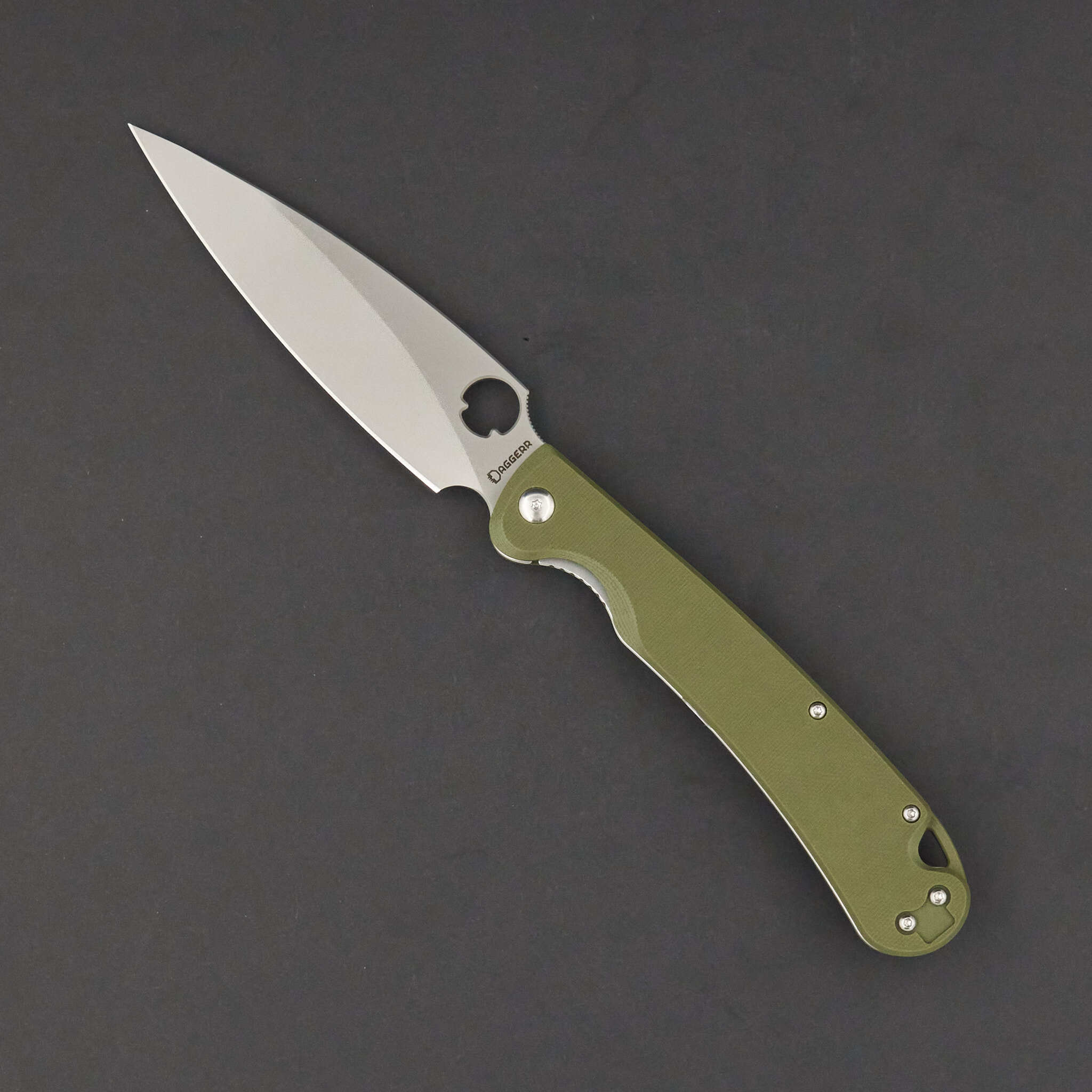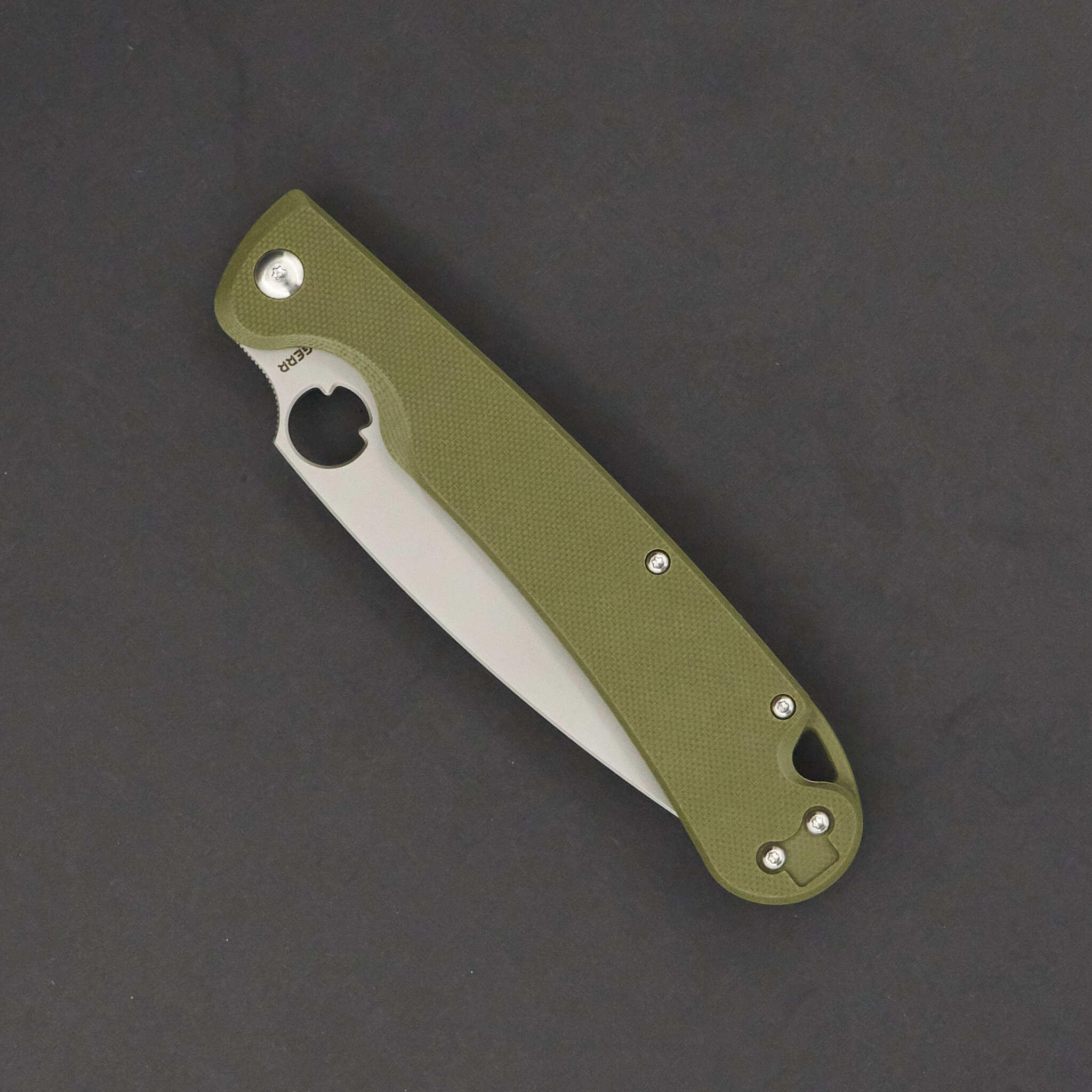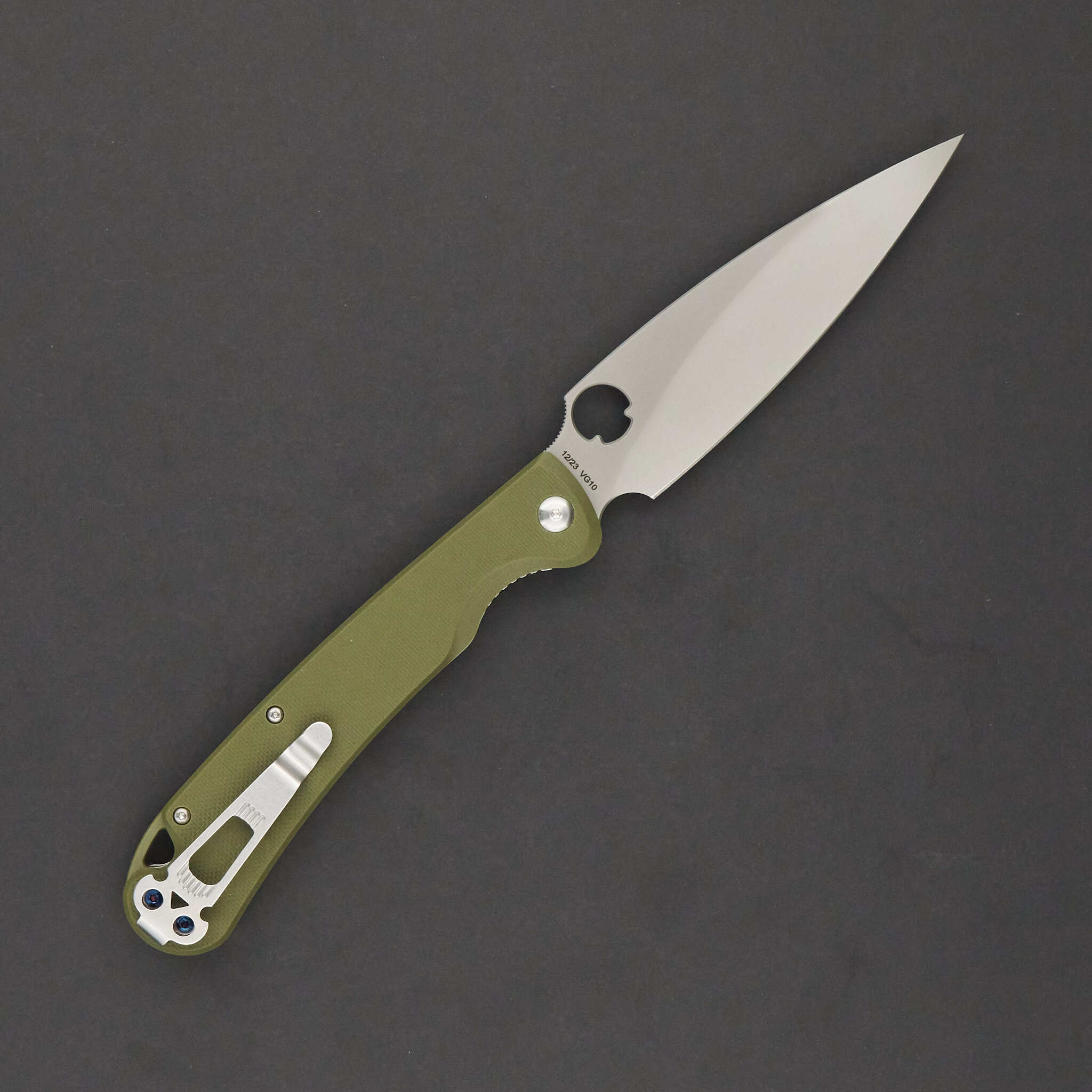 Оливковая рукоять из G10 выглядит сдержанно, но работает на все сто. Текстурированная поверхность надёжно удерживается в ладони, а плавные формы повторяют анатомию руки. Удобная клипса и темлячное отверстие завершают практичный дизайн.