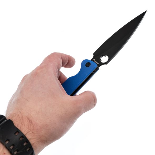 Сталь D2, использованная в клинке, гарантирует агрессивность реза и долговечность заточки, однако важно помнить о её предрасположенности к коррозии, что требует небольшого ухода за ножом. Клинок имеет алмазо-подобное покрытие DLC, что предохраняет его от коррозии и делает его стильно-черным.