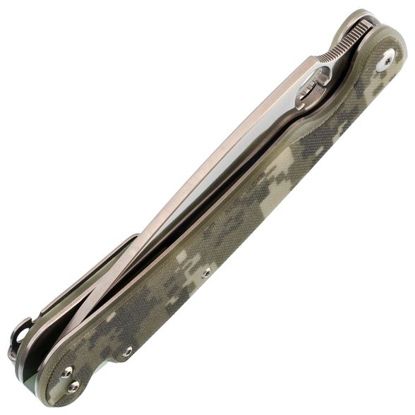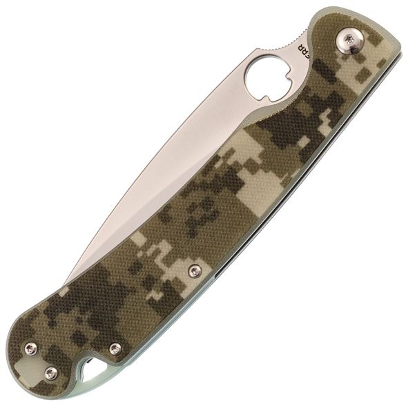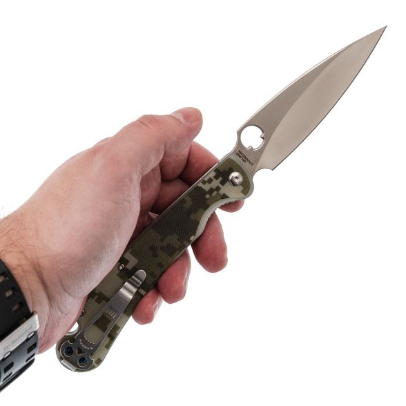 Рукоятка ножа с накладками из стеклотекстолита G10 не только дарит удивительную эргономику но и обладает надежной цепкой текстурой, обеспечивая уверенное и безопасное удержание.