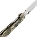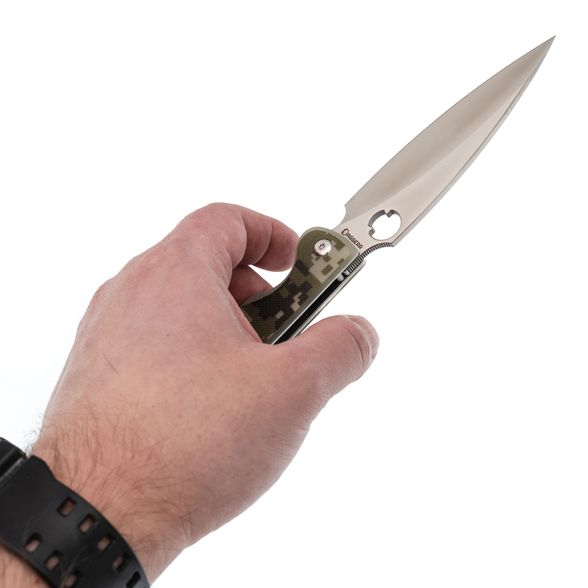 Созданный для тонких и точных работ, данный нож имеет прямые спуски, плавно сужающиеся к острию и завершаются в утонченном кончике, идеальном для проникающих действий или деликатных надрезов. В то же время пятка клинка с низким спуском способна выдержать более серьезные нагрузки.