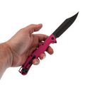 - Клинок изготовлен из нержавеющей стали 8Cr14MoV, известной своим оптимальным балансом между твёрдостью, износостойкостью и простотой в обслуживании. Он дополнительно защищён покрытием Black Stonewash, которое снижает видимость царапин и придаёт клинку тактический, слегка брутальный вид.
