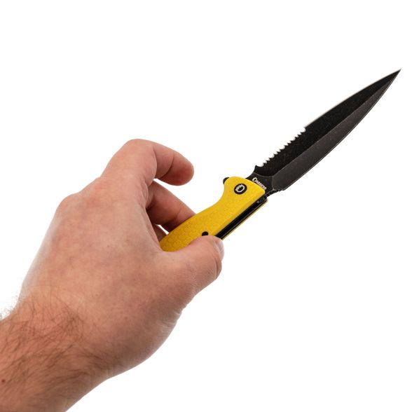 Складной нож Daggerr Vendetta Yellow Serrated BW DL, сталь 8Cr14MoV, рукоять FRN желтый
