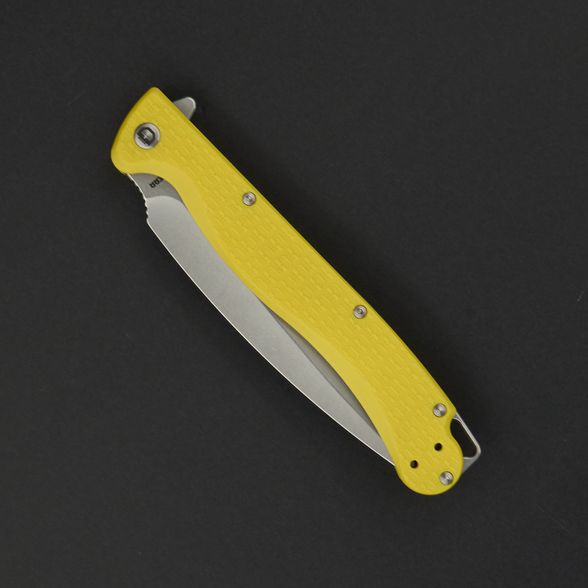 Daggerr Vendetta - это завораживающий кинжаловидный складной нож, который привлекает внимание своей харизмой и ярким дизайном. Он относится к бюджетной линейке Daggerr Discover Line, что делает его невероятно доступным, учитывая его впечатляющие характеристики. Яркий желтый цвет ручки придает ножу уникальный вид.