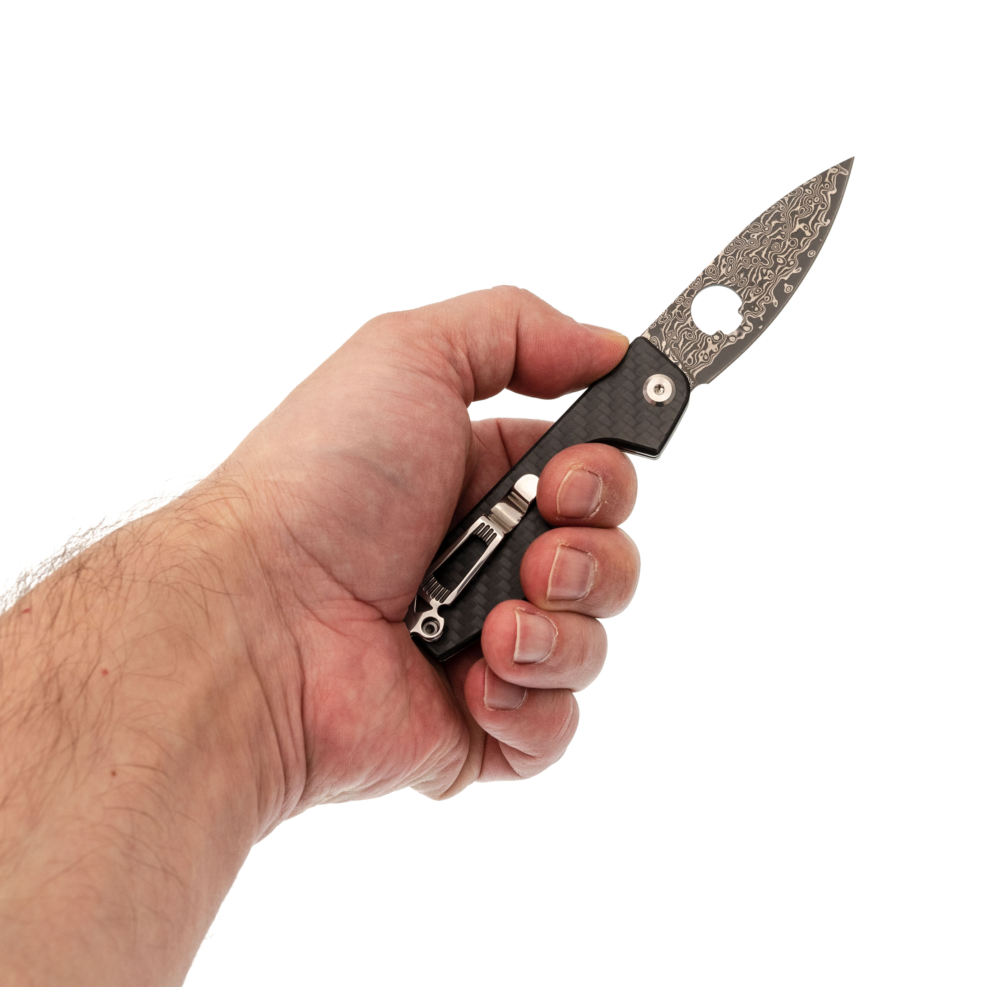 Профиль Spear-Point с прямыми спусками и тонким обухом обеспечивает лёгкий рез и точный контроль. Нож открывается фирменным отверстием в виде черепушки - удобное и запоминающееся решение, которое отличает Daggerr от других брендов.