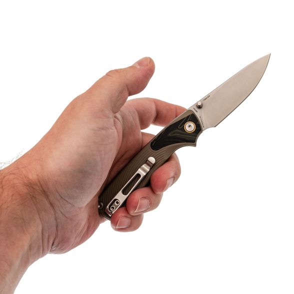 G10 - сверхпрочный и лёгкий материал. В этой модели используется для рукояти, что делает нож лёгким и комфортным в руке. Он также добавляет устойчивости к износу и улучшает сцепление, даже если руки слегка влажные.