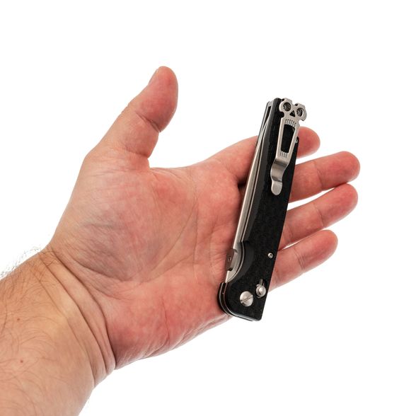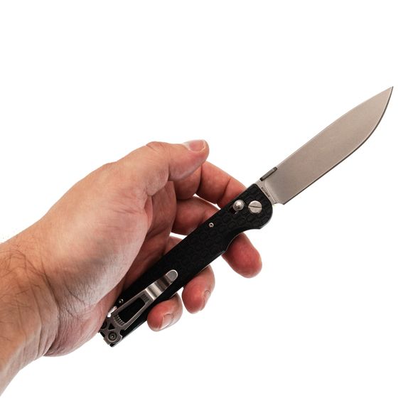 Рукоять из черного FRN отличается легкостью и практичностью, сохраняя удобный хват даже при длительном использовании. Рельефная текстура предотвращает скольжение, темлячное отверстие расширяет варианты ношения, а рифленая шайба на обухе обеспечивает простое и надежное открытие конструкции одной рукой. Dropet от Daggerr - это удачное сочетание доступности, функциональности и фирменного подхода бренда.