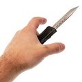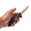 Рукоять выполнена из алюминия с фрезеровками и насечками, которые обеспечивают надежное удержание в руке. Приятный на ощупь материал и продуманный дизайн делают использование ножа комфортным и удобным. Механизм с автоматическим открытием и карманная клипса позволяют удобно носить и быстро достать нож при необходимости.