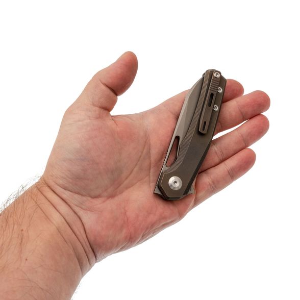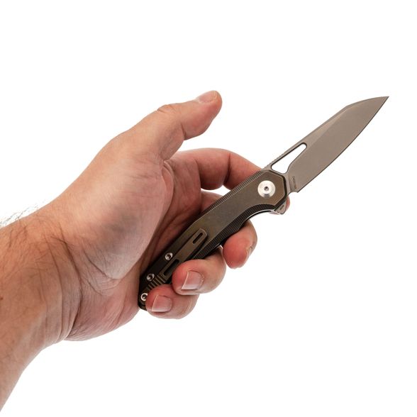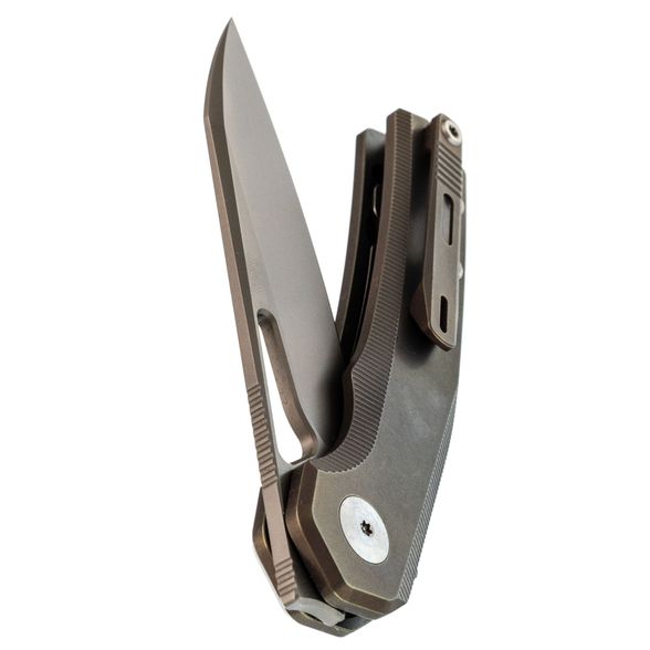 Рукоять ножа имеет нейтральную форму, что делает его удобным для большинства пользователей. Титановая основа и цельнофрезерованная клипса гарантируют долгий срок службы и удобство ношения инструмента на кармане.