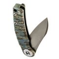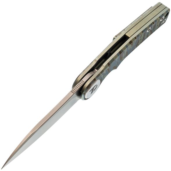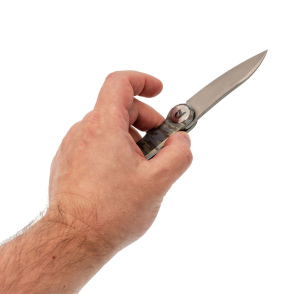 Нож оснащён клинком с модифицированным профилем Wharncliffe - сочетанием прямой линии обуха и лёгкого изгиба режущей кромки. Такая форма даёт высокий контроль при точных работах, оставаясь эффективной для общего использования. Прямые спуски почти от самого обуха придают клинку отличные режущие характеристики. Флиппер в тандеме с подшипниками позволяет открыть нож одной рукой - быстро и интуитивно.