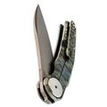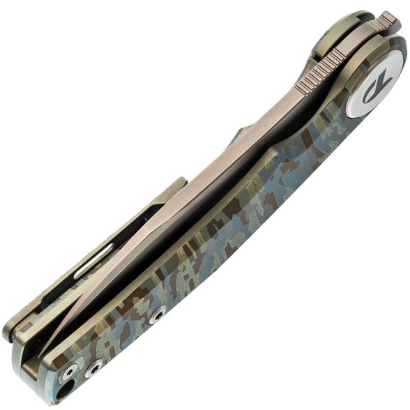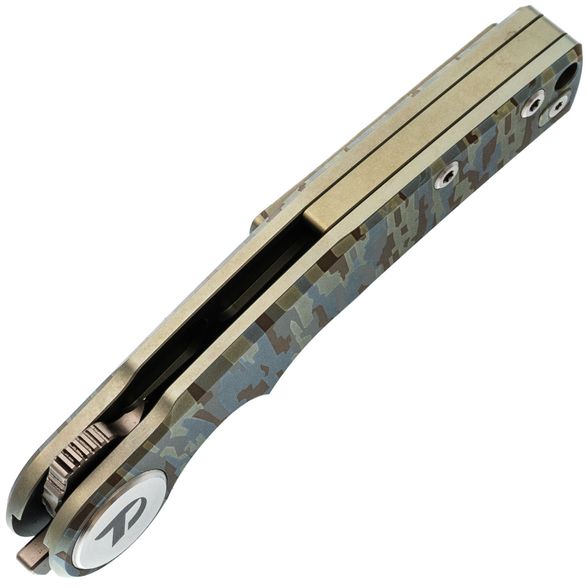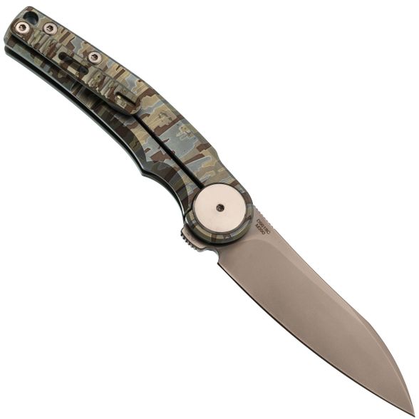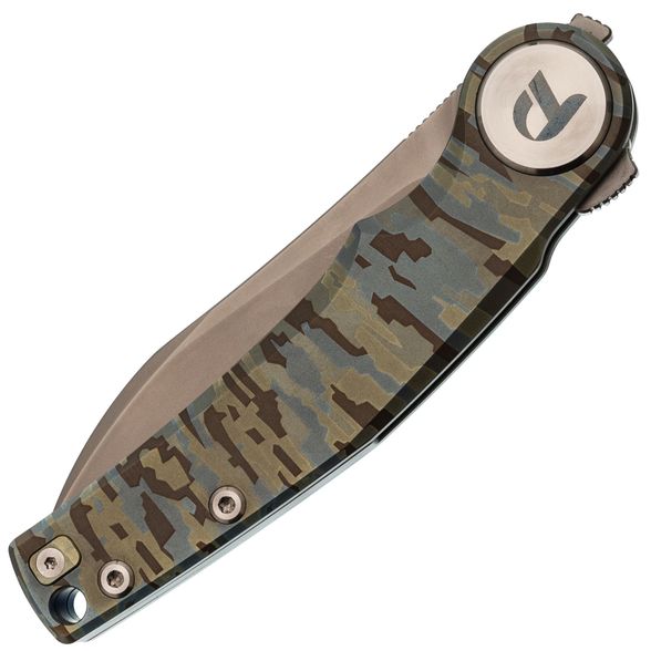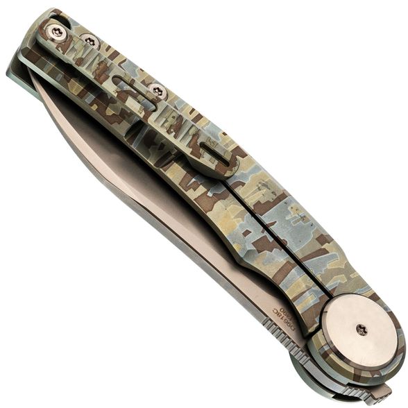 Титановая рукоять с гравировкой. Лёгкая, прочная и визуально выразительная - благодаря камуфляжной текстуре на поверхности. Надёжно лежит в руке и не скользит при работе.